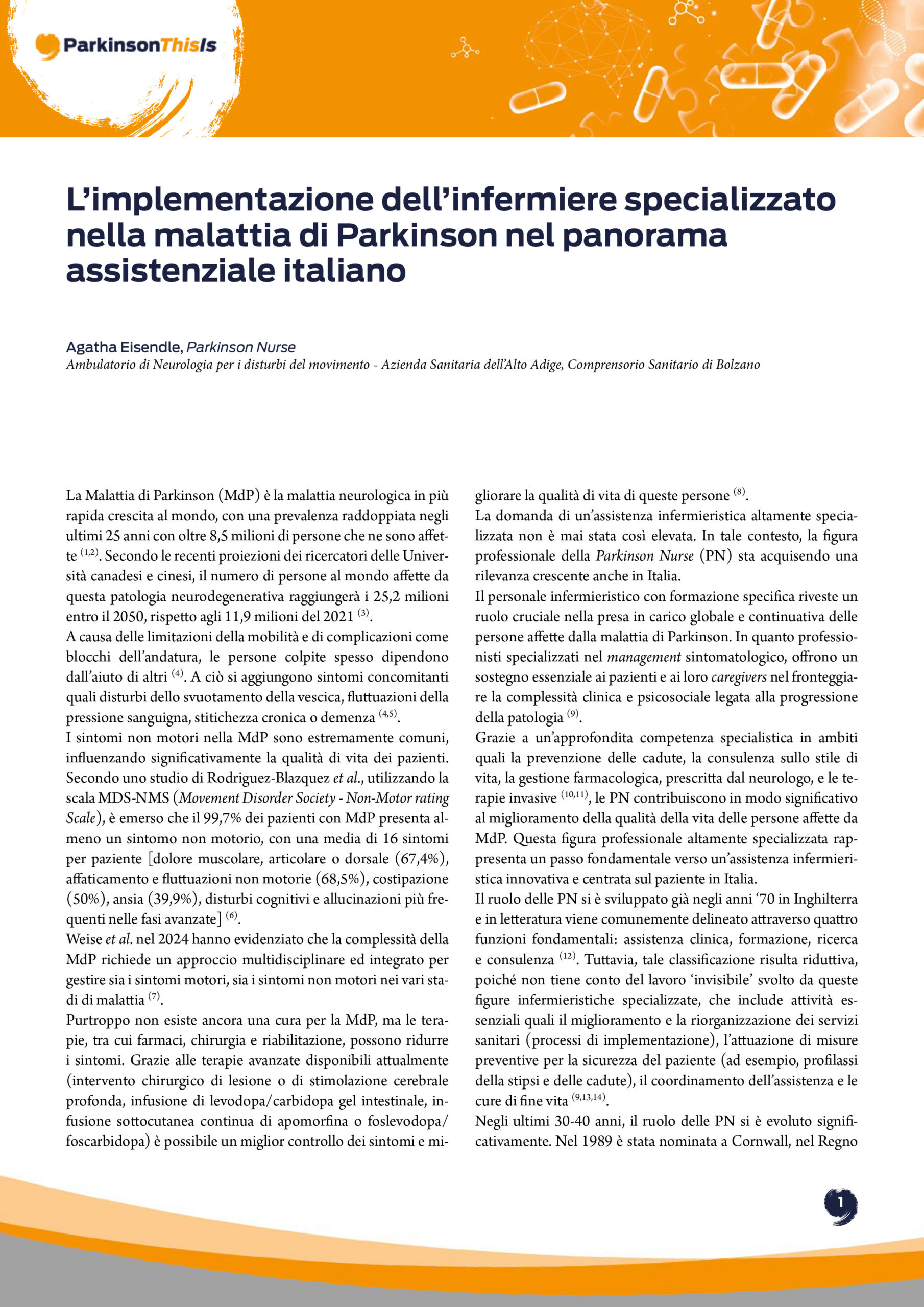 Sito di aggiornamento sulla malattia di Parkinson, contenente tematiche monografiche sulla patologia, interviste ad Opinion Leader e Responsabili dei Centri di Diagnosi e Cura e redazionali sui più importanti Congressi nazionali e internazionali, e commenti ai più recenti articoli della letteratura scientifica.